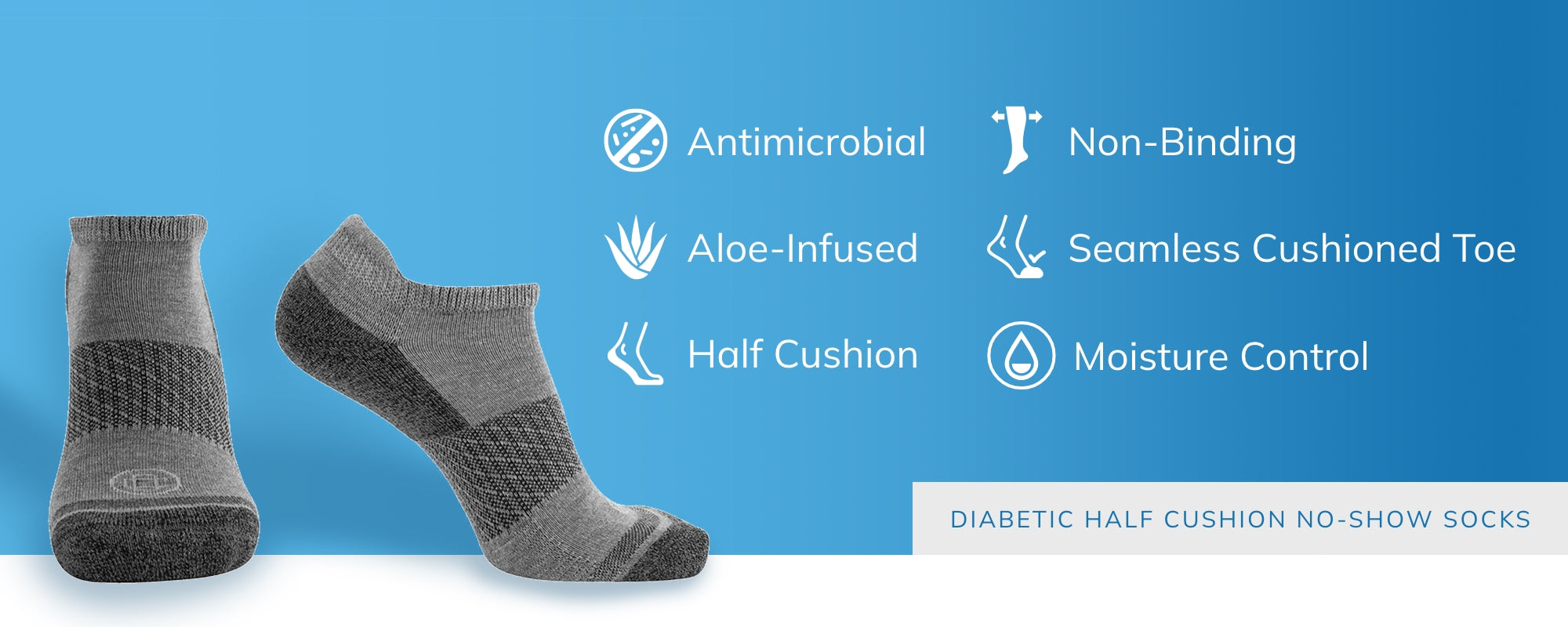 The Doctor's Choice Diabetic Half Cushion Low Cut Ankle Socks have a targeted half cushion foot which can provide support without a bulky feeling. Each sock is equip with moisture control features with maximum ventilation to help keep feet cool and dry.