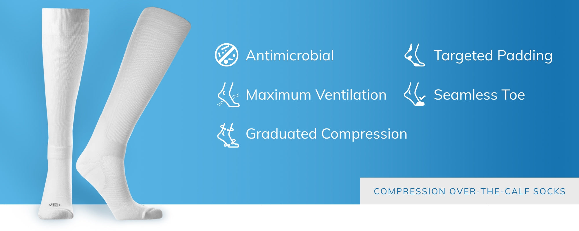 Compression Over-the-Calf socks are engineered to provide a premium fit with ultimate support.