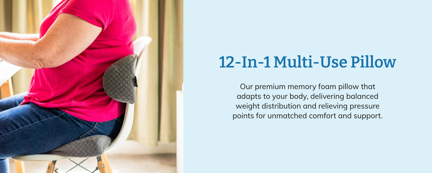 Transform your sitting or sleeping experience with the Doctor’s Choice Versatile Memory Foam Multi-Use Pillow, a comprehensive solution to common seating problems. Whether you're working long hours at the office, relaxing at home, traveling, or expecting a new addition to your family, this pillow offers the perfect blend of comfort, support, and adaptability. Invest in your comfort and well-being with our versatile memory foam pillow. Experience the difference that proper support can make in your daily life. Upgrade to this versatile solution today and enjoy unparalleled comfort wherever you go!